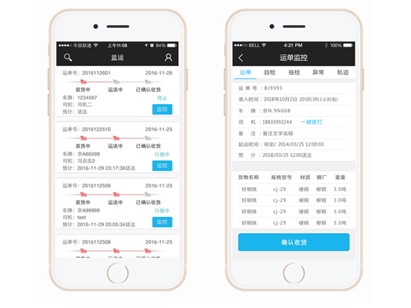 買家賬號由后臺生成,統一用短信發送給客戶,另外買家能查詢所有與它相關的運單號,還可以查看車輛運程中定期回傳的照片,如果買方不方便收貨,后臺可以幫助確認收貨,工程機結束監控。