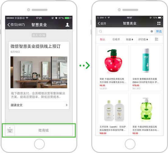 通過在微信線上商城,可以向客戶銷售美業休閑相關產品,客戶在店使用相關產品滿意后,回家可以自助選購下單,增加商家盈利手段