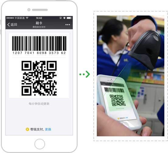 收銀員用掃碼槍掃描顧客微信付款的條形碼/二維碼,1-2秒即可完成支付!只需對(duì)系統(tǒng)進(jìn)行簡單升級(jí),無需改造硬件設(shè)備。