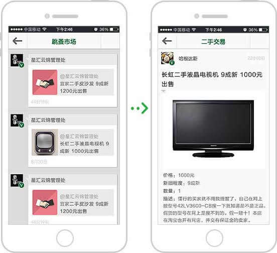 讓原本模式的鄰里關(guān)系變得熟悉起來,在社區(qū)公眾號上可隨意交流、交換物品。經(jīng)過身份認(rèn)證的社交關(guān)系更加值得信任