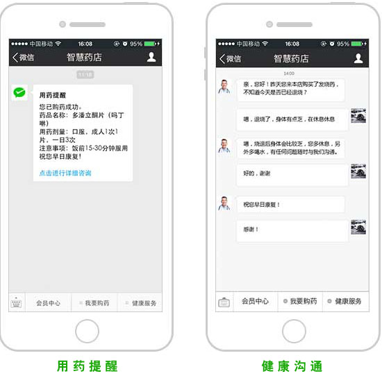 通過微信消息模板當用戶購藥后即發送用藥提醒,將用戶希望了解的藥品信息推薦至用戶