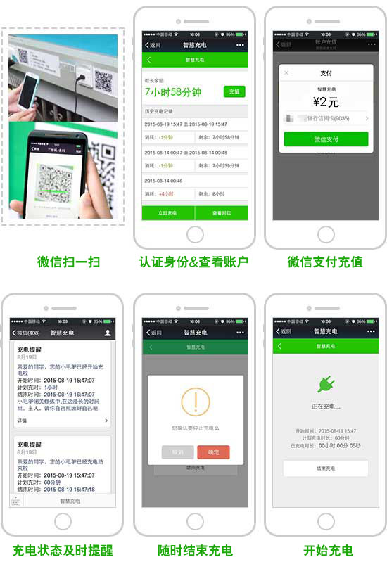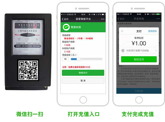 微信平安充電,通過微信掃一掃、及公眾號支付能力,可實現為電動車安全充電,解決了充電安全隱患問題。通過SOC芯片,智能識別電流電壓,遠程控制,一旦負載可電子速斷,同時通過對高校后勤電動車管理現狀和宿管的實際需求, 搭建的“數字化電動車充電管理系統”可以實現身份識別、電子支付、信息管理,空位查詢等功能,建立真正意義上的數字化智能充電管理系統強化校園內環保節能意識,降低消防安全隱患