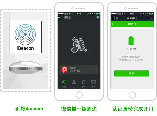 微信開門,基于微信身份ID識別,通過ibeacon及搖一搖功能,實現微信近場開門,為校園內搭建智能化管理門禁系統,沉淀學生行為數據,便于校方強化園區門禁管理,實現全面信息化管理
