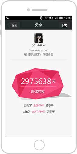 記錄用戶唱歌的記錄與評分,通過微信的社交能力,進行用戶間的對比和排名。并鼓勵用戶自發傳播,進行ktv的品牌及活動傳播